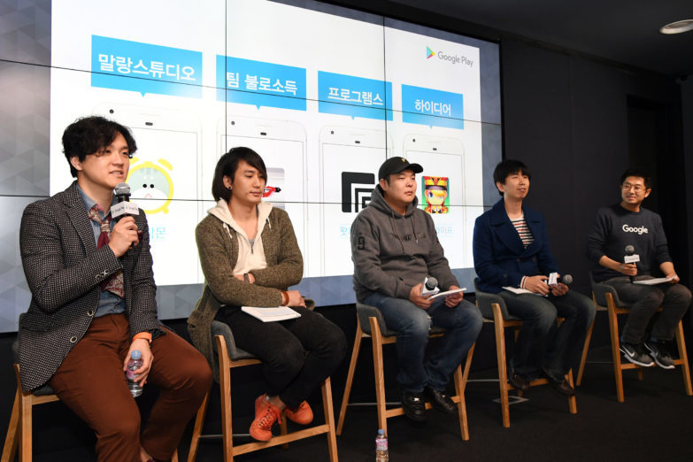 구글플레이가 7일 대치동 구글 캠퍼스 서울에서 ‘구글플레이 개발자와의 대화’ 세 번째 행사를 열고 ‘국내 시장을 넘어서 해외 시장에서의 성공을 넘보는 개발사’를 주제로 개발사 패널 토크를 진행했다. 이날 패널 토크에는 구글 한국 안드로이드 앱/게임 비즈니스 민경환 총괄의 진행으로 말랑스튜디오, 팀 불로소득, 프로그램스, 하이디어 대표가 참석해 해외시장 진출 배경부터 다양한 에피소드와 성장 비결에 대한 내용을 공유한 시간이었다.