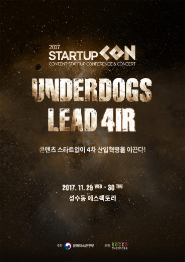 ◇ 문체부, 스타트업콘 2017 개최=문화체육관광부와 한국콘텐츠진흥원(KOCCA)이 11월 29일(수)~30일(목) 이틀간 서울 성수동 에스팩토리(S-FACTORY)에서 ‘스타트업콘 2017(2017 STARTUP CON)’을 개최한다. 올해로 3회째를 맞은 ‘스타트업콘 2017’은 ‘콘텐츠 스타트업이 4차 산업을 이끈다’를 주제로 콘퍼런스, 피칭 콘테스트, 워크숍 및 네트워킹 파티 등 다채로운 프로그램을 진행한다. 행사 참석하는 주요 연사로는 테크 크런치(TechCrunch) 편집장인 마이크 버처(Mike Butcher), 최초의 사이보그가 된 인공지능 과학자이자 코벤트리(Coventry) 대학교 부총장인 케빈 워윅(Kevin Warwick), 영국의 빅데이터 분석가 크리스티안 호위스(Christian howes)가 연단에 선다. 행사 참가비는 무료이며 참가신청은 온오프믹스를 통해 가능하다.