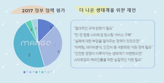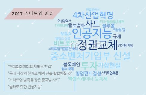 ◇2017년 스타트업 이슈는?=스타트업과 투자자 모두 내부적으로 정권교체가 가장 큰 화두였다고 꼽았다. 지난 11월에는 중소기업벤처부가 출범하면서 미래창조과학부와 중소기업청, 산업부, 금융위원회 등이 담당하던 창조경제•스타트업 정책을 일원화했다. 안창주 엔슬협동조합 이사는 “중소벤처기업부가 벤처기업과 스타트업에 필요한 입법을 제시하고 정책 관련 컨트롤 타워 역할을 할 것”으로 기대했다. 한편 스타트업 업계에서는 정권교체를 통해 관려 정책이 활성화 될 것이라는 기대도 있었지만 스타트업 분위기가 근본적으로 바뀔지에 대한 의문을 표하는 경우도 있었다.