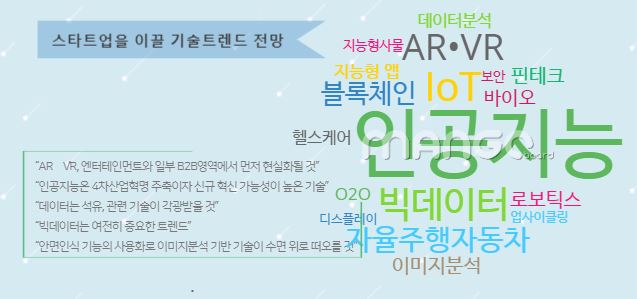 ◇스타트업, 이 기술 잡아라=앞으로 스타트업을 이끌 기술 트렌드를 묻는 질문에는 인공지능이 83%로 압도적으로 높은 비율을 차지했다. 다음으로 사물인터넷과 빅데이터가 트렌드가 될 것이라는 답변이 뒤를 이었다. 사물이 데이터를 주고받으면서 축적된 정보와 이를 가공하는 기술은 인공지능 서비스의 질을 결정할 것이라는 설명이다. “산업 전 분야에 걸쳐 데이터 기반 딥러닝 등 산업 고도화와 관련 기술이 각광받을 것”이라는 전망이다.