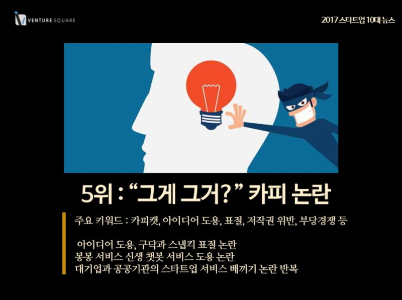 [2017 연말기획] 하루하루를 살아낸 것뿐인데 어느덧 한 해가 다 지나갔다. 눈 깜짝할 사이에 지나간 2017년엔 어떤 일들이 있었을까. 기억의 저편으로 사라진 그 때 그 뉴스부터 뇌리에 강렬하게 박혀있는 사건까지 2017 스타트업 생태계를 뒤흔든 10대 뉴스를 정리해봤다.