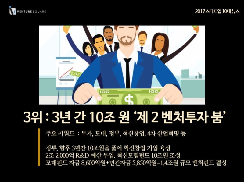 3위 : 3년 간 10조 원 ‘제 2 벤처투자 붐’