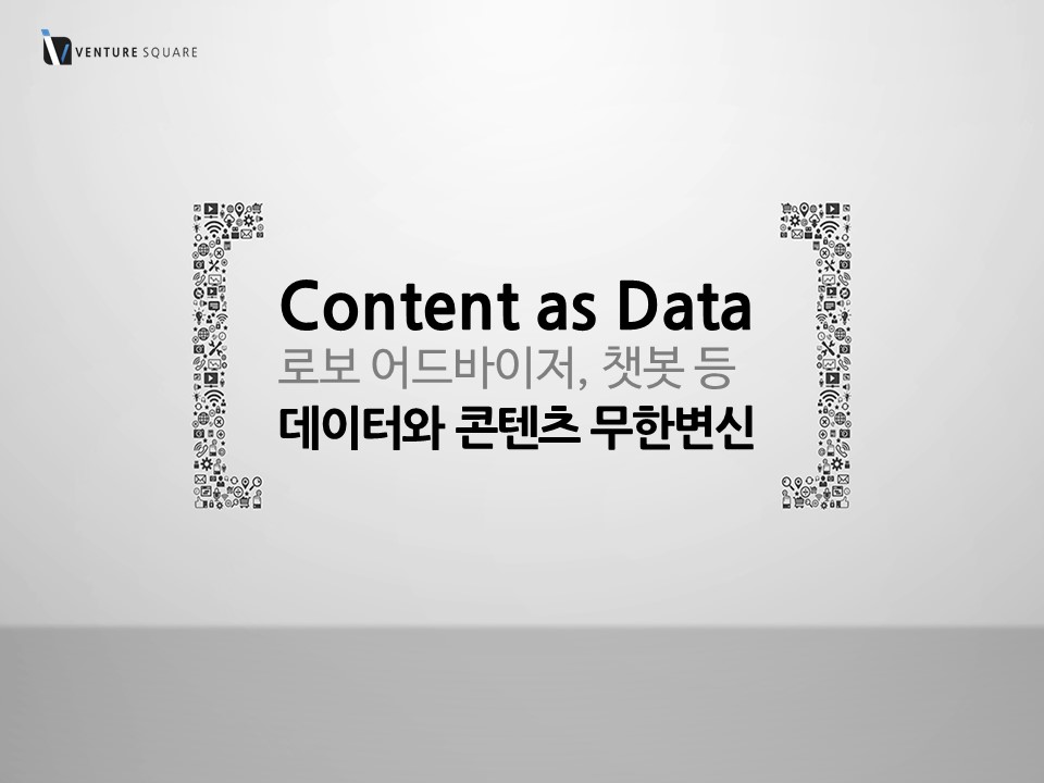 다음은 데이터(Content as Data)다. 로보어드바이저와 챗봇. 요즘 주목받는 서비스의 공통점은 무엇인가. 데이터다. 브라이언 크르자니크 인텔 CEO는 “데이터는 다음 시대의 오일”이라고 표현했다. 이 새로운 시대의 오일은 콘텐츠와 결합해 무한 변신을 계속할 것이다. 새로운 기회가 이곳에 있다.