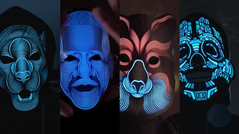 사운드 리액티브 LED 마스크(The Sound Reactive LED Mask)는 야밤이나 어두운 곳에서 음악과 연동해 LED 불빛으로 반응하게 만든 마스크다. 마스크는 단순히 얼굴을 가리는 것 뿐 아니라 놀이나 종교 의식에서도 오래 전부터 빼놓을 수 없는 도구였다. 이 제품은 이렇게 오래된 마스크에 기술을 융합, 주위 소음이나 음악에 반응해 마스크에 그려진 장식이 변화하거나 번쩍이게 해준다.