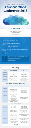 ◇제 3회 에듀클라우드 월드컨퍼런스 2018 개최=에듀클라우드 월드 컨퍼런스 2018이 오는 26일(금) 오전 9시부터 오후 6시까지 서울 코엑스 4층에서 개최된다. ‘4차산업혁명, 초·중등 선생님과 에듀테크가 만나는 SW교육과 미래교육 세상’을 주제로 열리는 컨퍼런스는 에듀테크 산업정책 방향부터 국내외 새로운 교육 동향과 기술, 그리고 교육현장에서의 활용 사례까지 에듀테크와 관련된 실용적인 강연들로 구성됐다. 참가 접수는 여기에서 할 수 있다.