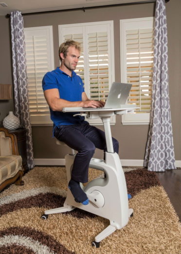 이 제품은 스탠딩 데스크도 되고 자전거 머신으로 탈바꿈 시킬 수도 있어 일하면서 운동할 수 있도록 돕는다. 360도 회전하는 바퀼 휠 4개를 곁들여 이동도 쉽다. 의자 아래쪽에 위치한 버튼을 누르면 높낮이를 75∼95cm 범위 안에서 조절할 수도 있다. 테이블 역시 가스 압력 감지 기능을 이용해 높낮이를 조절할 수 있다. 덕분에 신장이 150∼190cm 사이라면 누구나 이용할 수 있다.
