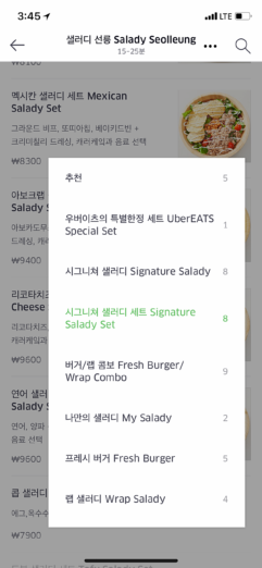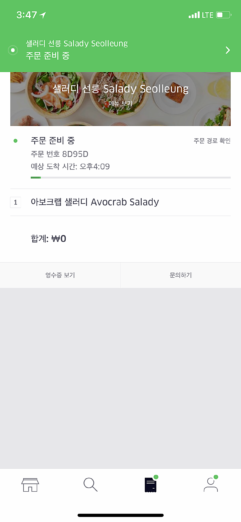 버거나 타코, 할랄 음식 등 다양한 선택지가 있었지만 점심을 먹었기 때문에 헤비한 음식을 주문하기엔 다소 버거웠다. 그래서 선택한 메뉴는 샐러드였다. 채식주의자도 다이어트 중도 아니었지만 1만원 이하의 부담없는 가격에서 고르려고 하니 딱히 만만한 메뉴가 떠오르지 않았다.