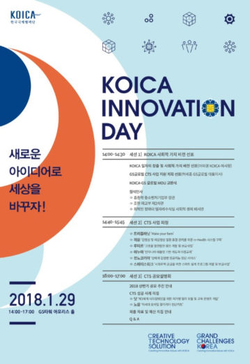 올해 첫 개최되는 이노베이션 데이는 ‘새로운 아이디어로 세상을 바꾸자’를 주제로 진행된다. 코이카는 2015년부터 청년 기업가들의 아이디어와 기술을 접목하여 의료, 교육, 에너지 등의 문제를 해결하는 새로운 공적개발원조 사업인 CTS프로그램(Creative Technology Solution, 혁신적 기술 프로그램)을 통해 제 3세계를 돕는 스타트업들을 발굴, 양성해 왔다.