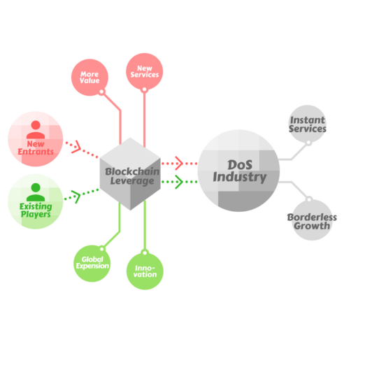 2017년 하반기에만 상반기 대비 6배 규모 자금이 ICO를 통해 투자됐고 지금도 꾸준히 새로운 가상화폐가 등장하고 있다. 코닥과 텔레그램처럼 글로벌 대기업이 직접 코인이나 토큰을 발행하는 예도 있고 도요타나 월마트와 같이 블록체인 기술을 접목해 더 안전하고 투명한 사업을 구상 중인 곳도 있다. 현존 플레이어(Existing Player)와 새로 들어오는 참가자(New Entrants) 모두 블록체인 기술을 활용해 소비자에게 더 높은 가치를 주는 DoS 산업에 뛰어들고 있음을 알 수 있는 부분이다.
