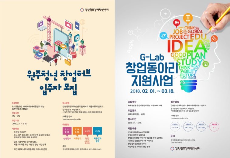 강원센터 원주사무소에서 진행하는 이번 사업은 창업 아이디어의 사업화 기회를 제공하는 ‘창업동아리(G-LAB)’와 입주 공간 및 관련 인프라 제공을 통해 사업 성장을 지원하는 ‘원주청년창업허브’로 구성된다.