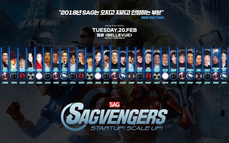 2월 20일 화요일 19시부터 서울 청담벨류에서 열릴 예정인 이번 행사가 내건 슬로건은 “Start Up! Scale Up!” 뭉쳐서 더 강해지자는 의미를 담고 있다. 이번 행사에는 SAG 회원사 대표 중 30여 명이 사그벤저스라는 팀을 만들어 진행한다.