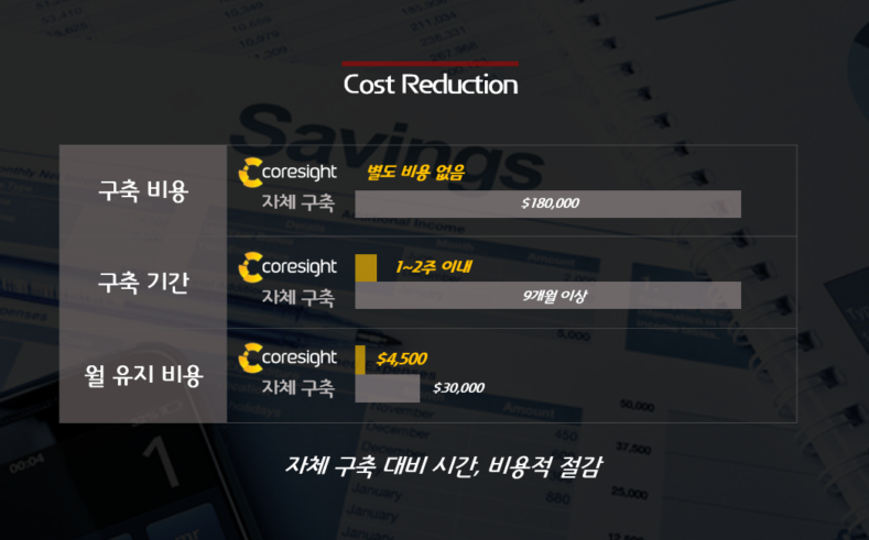 코어사이트의 타깃 고객인 중형 퍼블리셔와 개발사는 자체적으로 분석 서비스를 구축하려고 하지만 구축 비용, 구축 기간, 유지 비용 등을 이유로 원하는 분석 데이터를 얻지 못하고 있다.