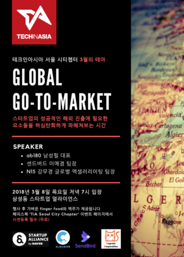 ◇‘테크인아시아’ 서울 챕터, 해외진출 팁 공유=글로벌 스타트업 미디어 테크인아시아 한국 커뮤니티인 서울 챕터가 3월 8일 목요일 저녁 7시부터 삼성동 스타트업 얼라이언스에서 올해 첫 행사를 개최한다.