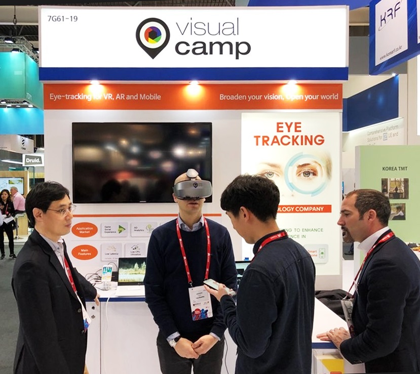 비주얼캠프가 MWC2018에서 아이트래킹 솔루션이 탑재된 올인원 VR HMD 레퍼런스 모델을 공개했다.