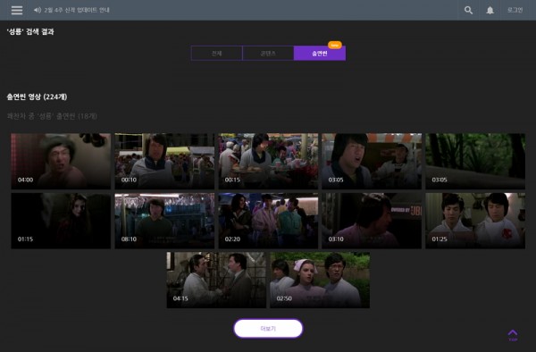 예를 들어 기존에는 ‘성룡’이 출연한 부분 장면을 감상하려면 사용자가 직접 영화 내에서 구간을 이동해 가면서 해당 부분을 찾아야 했지만, 이제는 시간대별 출연 장면 표식을 통해 한 번에 찾아 볼 수 있다. 검색할 때 특정 작품만이 아닌 ‘성룡’이 출연한 모든 작품에서 출연 장면 영상을 한 번에 찾을 수 있어 원하는 배우의 장면만 골라 보기 가능하다.