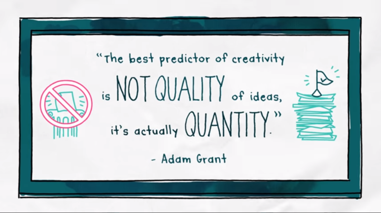 하지만 이는 잘못된 방법이다. 창의력에 있어 가장 중요한 변수는 아이디어의 질이 아닌 아이디어의 양이기 때문이다. 가장 먼저 생각나는 아이디어는 보통 가장 평범한 것이다. 이런 이유로 가장 먼저 생각나는 것이다. 이런 아이디어를 배제한 다음에야 진정 창의적인 아이디어가 나오게 된다.