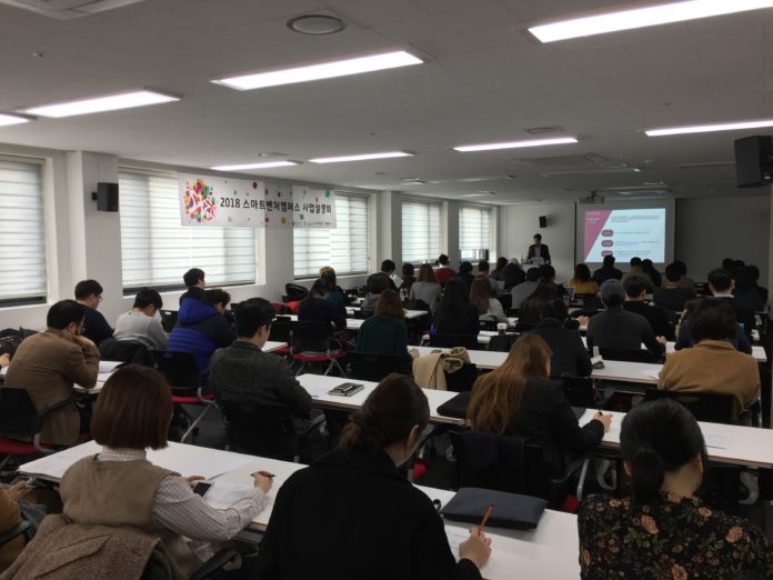 ㈜옴니텔이 12일 서울 공덕동 서울창업허브에서 제 2차 스마트벤처캠퍼스 사업 설명회를 개최하고 4월 5일까지 스마트벤처캠퍼스 참여 기업을 모집한다.
