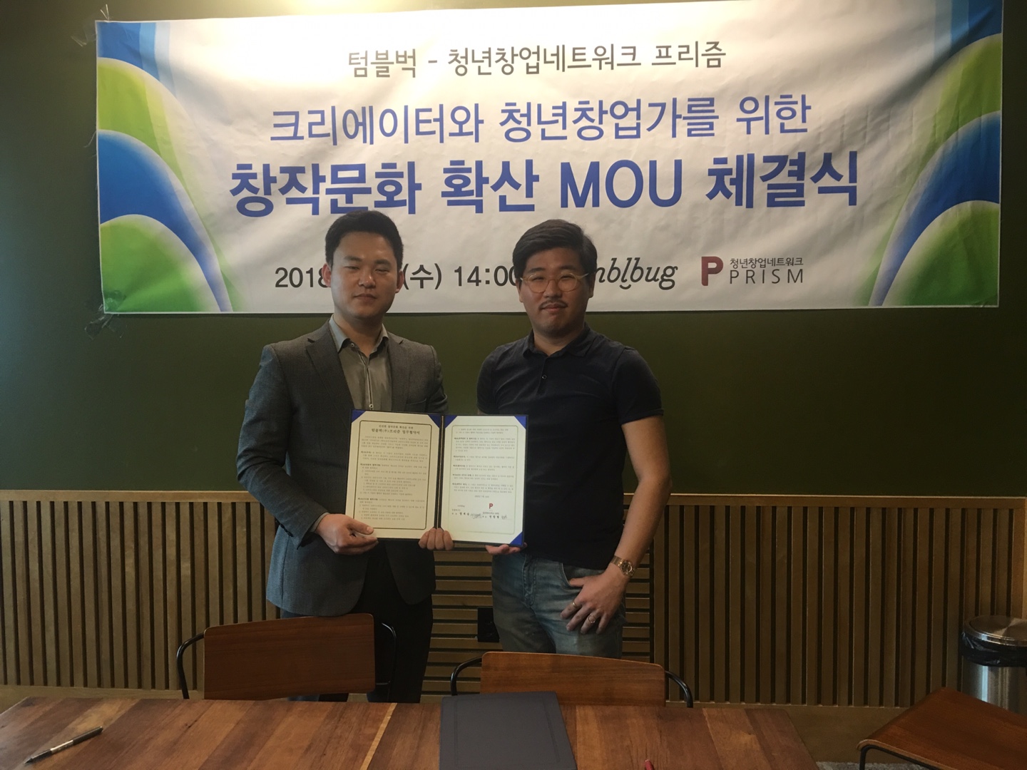 청년창업네트워크 프리즘과 크라우드펀딩 플랫폼 텀블벅이 14일 업무 협약을 체결했다.