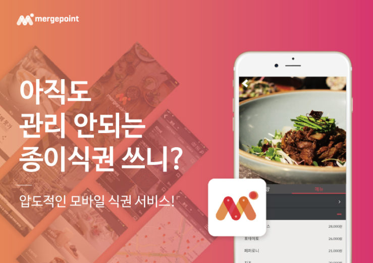 머지포인트가 기업 대상 모바일 식권 서비스를 선보인다. 이 서비스는 기업별 식대 정책에 따라 맞춤 구성할 수 있다. 정책에 따라 머지포인트를 배정하고 임직원 식대 사용 내역은 실시간 확인할 수 있다. 그 뿐 아니라 스마트 메뉴판을 도입해 짧은 점심시간을 효율적으로 쓸 수 있고 식당으로 가는 승강기 안에서 선결제할 수 있다.