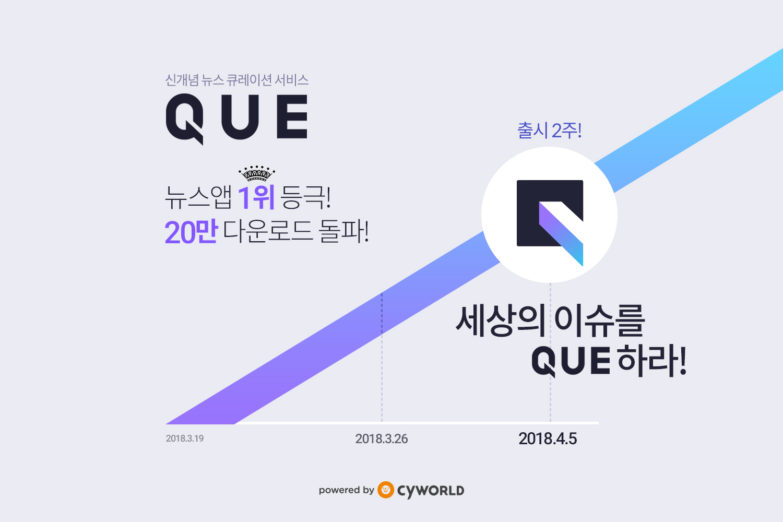 싸이월드는 뉴스 큐레이션 서비스 ‘큐(QUE)’가 출시 2주 만에 20만 다운로드를 기록했다고 5일 밝혔다.