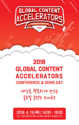 ◇2018 글로벌 액셀러레이터 콘퍼런스&데모데이=한국콘텐츠진흥원이 ‘2018 글로벌 액셀러레이터 콘퍼런스&데모데이’를 19일 콘텐츠코리아랩 기업지원센터 9층에서 개최한다.