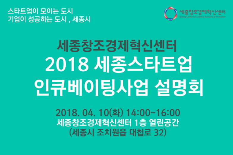 세종센터 스타트업 인큐베이팅사업 및 보육기업모집 설명회 사전신청은 여기에서 할 수 있다. 사전신청 시 2018년 스타트업지원사업 가이드북이 제공된다.