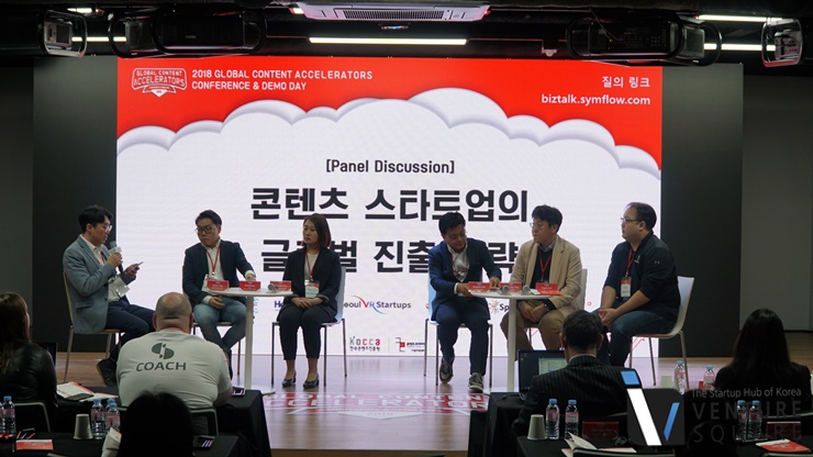 “콘텐츠 스타트업에게 글로벌 진출은 선택이 아닌 필수” 콘텐츠 스타트업의 글로벌 진출을 돕는 액셀러레이터들이 한자리에 모였다. 강동원 글로벌청년창업가재단 센터장, 조은희 헤브론스타벤처스 팀장, 박종형 서울VR스타트업스, 윤형구 아이빌트 세종 팀장, 김유진 스파크랩 대표는 “유니콘이 실리콘밸리에서만 나온다는 건 옛날 애기다. 리소스가 주어지면 충분히 경쟁할 수 있다”고 입을 모았다.