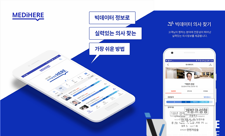 메디히어는 성형외과와 피부과 전문의를 추천해주는 모바일 의료 O2O 플랫폼. 의사별 세부 전문 분야나 대표 시술 정보를 바탕으로 체계적인 방식으로 추천, 의료 서비스 시장 구조 개선과 정보 비대칭성을 완화할 수 있게 해준다.