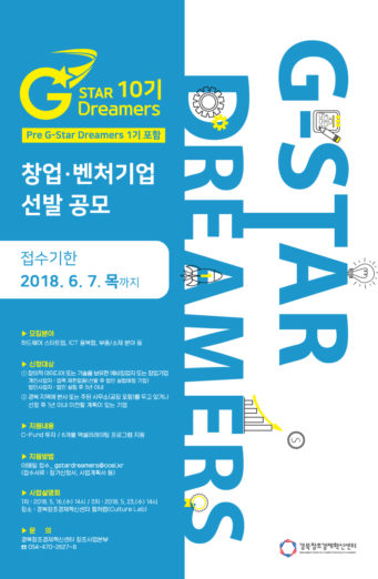 ◇경북센터 G-Star Dreamers 10기 모집=경북창조경제혁신센터가 G-Star Dreamers 10기와 Pre G-Star Dreamers 1기를 모집한다.