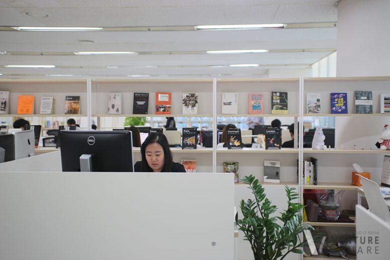 공간 서비스는 새로운 트렌드나 도시, 건축, 부동산 관련 서적을 많이 봐야 한다. 서비스 기획자에게는 잘 전시된 관련 도서를 늘 마주할 수 있게 해 효과를 높였다. 팀의 핵심 가치에 맞는 주제별 매거진과 도서, 정기간행물을 넉넉한 데스커 책장과 함께 효율적으로 전시할 수 있다는 점이 좋았다. 앞으로도 팀의 지적 자본과 경험 자본을 축적시킬 수 있는 최적의 콘텐츠인 책을 계속해서 이 공간에 채워갈 예정이다.