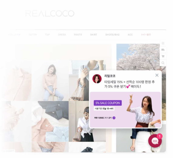 넛지는 실시간 채팅 솔루션 채널 상에서 구동되는 챗봇. 쇼핑몰 고객에게 인사를 건네고 장바구니에 물건만 담아두고 구매하지 않는 고객에겐 적립금 정보도 알려준다.