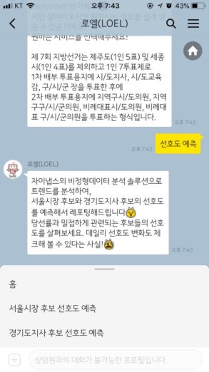 로엘은 카카오톡 플러스 친구를 통해 이용할 수 있다. 플러스 친구 찾기에서 지방선거봇이나 로엘을 검색해 친구 추가를 하면 된다.