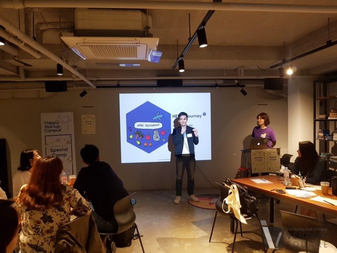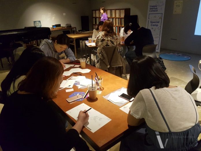 1일 오전 10시부터 진행된 캠프는 과거로의 여정부터 시작됐다. 프로그램 운영을 맡은 해피스타트업 캠퍼스의 홍유정 대표가 참여자들의 성장 가이드로 나섰다. 해피스타트업캠퍼스는 긍정심리학을 기반으로 6개 연구학자의 이론을 바탕으로 제작한 히어로 저니북으로 참가자들이 과거, 현재를 돌아보고 미래를 준비할 수 있도록 돕는다.