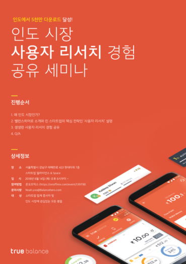 ◇밸런스히어로, 사용자 리서치 경험 공유 세미나 개최=밸런스히어로가 사용자 리서치 전략 경험 공유 세미나를 14일 스타트업얼라이언스에서 개최한다. 이번 세미나는 린스타트업 전략과 사용자 리서치 경험을 통해 인도시장에 안착한 밸런스히어로가 성공 사례를 공유하는 시간으로 꾸려진다. 인도 현지에서 사용자 리서치를 맡고 있는 도승희 밸런스히어로 매니저가 생생한 사례를 전할 예정이다. 자세한 사항은 스타트업얼라이언스 홈페이지를 통해 확인 할 수 있으며 참가신청은 온오프믹스에서가능하다.