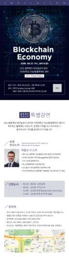 ◇ 얍컴퍼니, 블록체인 이코노믹 강연=얍컴퍼니가 6월 22일 오전 9시 30분부터 12시까지 서울 종로구 트윈트리타워에서 블록체인 이코노믹 강연을 개최한다고 밝혔다. UCL 블록체인 테크놀로지 센터와 서강대학교 지능형 블록체인 센터가 주최하는 이번 행사에는 파올로 타스카(Paolo Tasca)가 초청 연사로 나설 예정. 나올로 타스카는 영국 UCL 블록체인 테크놀로지 센터 설립자 겸 상임위원으로 UCL과 BLT 관련 여러 블록체인 프로젝트를 수행하기도 했다.