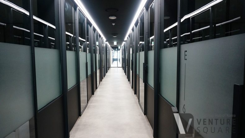 입주 카드를 찍고 들어가야 하는 사무 공간으로 이동했다. 쭉 늘어서 있는 독립 사무 공간은 총 200개로 2인, 4인, 6인 그리고 20인실로 구분되어 입주사의 규모에 맞게 선택할 수 있게 해놨다.