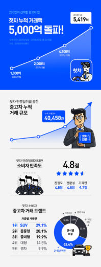 첫차의 누적 거래 건수는 4만 458건. 지난해 월 평균 거래액 210억 원을 기록한 첫차는 올해 들어 월 평균 거래액을 250억 원으로 끌어올렸고 지난달에는 270억 원을 기록하는 등 성장세를 유지하고 있다.