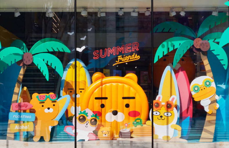 카카오프렌즈 측은 전국 매장도 여름 분위기에 맞춰 야자수를 드리운 썸머프렌즈 컨셉존 등으로 단장했다.