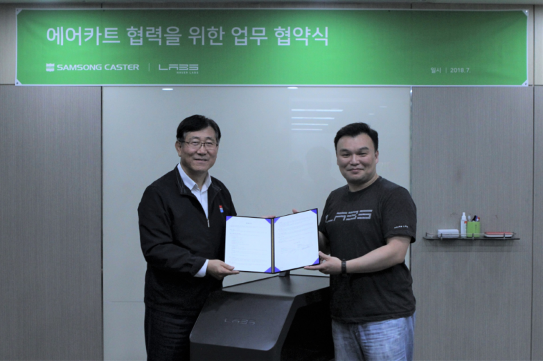 네이버랩스·삼송캐스터, 에어카트 사업 MOU 체결=네이버랩스가 삼송캐스터와 도서관용 에어카트 상용화를 위한 MOU를 체결했다. 에어카트는 네이버랩스의 로보틱스 기술을 접목해 전동카트를 개발했다. 이번 제휴에 따라 네이버랩스는 삼송캐스터와 함께 도서관용 에어카트 상용화에 집중, 도서관과 서점 직원 업무를 도울 예정이다. 40년 운송장비 제조 경험을 보유한 삼송캐스터는 노하우를 살려 기기 양산과 A/S를 포함한 국내외 영업을, 네이버랩스는 기술 이전을 맡는다. 이번 제휴는 네이버랩스가 직접 주체가 되어 참여하는 사업인 만큼 기기를 양산하면 네이버랩스 디자인과 제품명을 그대로 쓸 수 있다. 네이버랩스 측은 이번 제휴가 중소기업과의 협력을 통해 사업을 진행한다는 데 의미가 깊다고 설명했다. 석상옥 네이버랩스 리더는 “기술 연구개발을 넘어 실생활에 널리 쓰일 수 있는 영역에 상용화를 진행해 로봇 기술 대중화에 앞장서겠다”면서 “도서운반용 뿐 아니라 의료용 카트, 마트용 카트, 공항용 스마트 카트, 공구함용 스마트 카트 등에 널리 쓰일 수 있는 기술인 만큼 다양한 영역에서 활용이 기대된다”고 밝혔다.