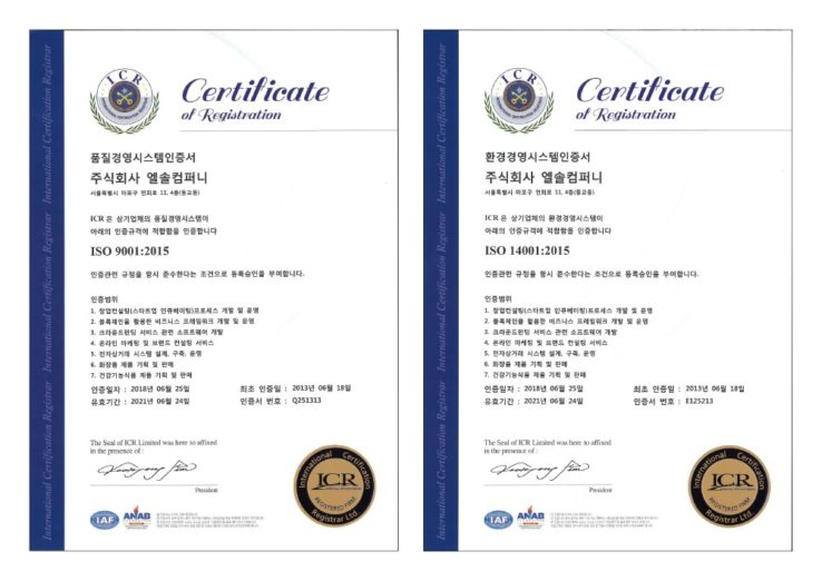 ◇ 엘솔컴퍼니, ISO 9001/ISO 14001 획득=엘솔컴퍼니가 국제인증기관 ICR로부터 품질 경영 국제 표준인 ISO 9001과 환경경영 국제표준인 ISO 14001을 획득했다고 밝혔다. 엘솔컴퍼니가 인증 받은 범위는 스타트업 인큐베이팅 프로세스 개발과 운영, 블록체인을 활용한 비즈니스 프레임워크 개발과 운영, 크라우드펀딩 서비스 관련 소프트웨어 개발 등이다. 회사 측은 자사가 진행 중인 사업 내용과 맞물려 앞으로 좋은 시너지가 날 것으로 예상하고 있다. 최준호 엘솔컴퍼니 대표는 “이번 ISO 9001과 ISO 14001 인증 획득은 엘솔컴퍼니가 고품질과 환경경영시스템을 확보했다는 점을 인정받은 것”이라며 “앞으로도 기업 신뢰도와 대외적인 공신력 확보를 위해 정도경영에 충실하겠다“고 밝혔다.