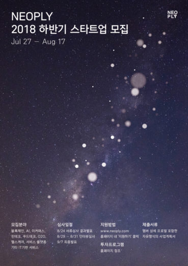 ◇ 네오플라이, 2018 하반기 스타트업 모집 시작=네오플라이는 자사가 운영 중인 스타트업 발굴 지원 프로그램 2018년 하반기 모집을 8월 17일까지 진행한다고 밝혔다. 하반기 모집 분야는 블록체인과 인공지능, 서비스 플랫폼, e커머스, 핀테크 등 IT 기반 서비스. 예비 창업팀을 비롯해 창업 3년 이내까지 시드 투자를 원하는 스타트업이라면 누구나 지원할 수 있다. 1차 서류, 2차 인터뷰 심사를 거쳐 선발되면 독립형 사무 공간 제공, 초기 창업자금 투자를 진행한다. 1년간 최소 요건 제품 개발에서 정식 서비스까지 안착을 위한 맞춤형 실무 멘토링도 지원한다. 보육기간 중 내부 심사를 통해 5,000만 원 추가 투자 프로그램도 진행한다. 그 밖에 졸업 기업과의 교류 확대, 스타트업 경영 노하우 공유 워크숍, 네트워킹 모임도 마련하며 후속 투자자 연결, 네오플라이차이나를 통한 중국 진출 기회도 제공한다. 지원하려면 팀원 프로필을 포함한 자유 형식 사업계획서를 작성해 네오플라이 홈페이지를 통해 제출하면 된다.