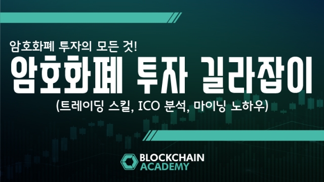 ◇ [8월 2일 목] 블록체인아카데미 암호화폐 투자 길라잡이=블록체인 아카데미가 암호화 화폐 투자 길라잡이 프로그램을 오는 8월 2일과 8월 9일 블록체인센터에서 진행한다. 암호화폐 투자 길라잡이 과정은 암호화폐 3가지 투자방법(ICO, 마이닝, 트레이딩)에 대한 전문 지식을 습득하고 적용할 수 있는 과정. 8월 2일에는 암호화폐 기술적 분석을 활용한 트레이딩 기법을. 8월 9일에는 IOC 혼탁한 시장에서 검증하는 법, 마이닝 A to Z를 배울 수 있다. 모집은 선착순으로 마감하며 유료다. 행사에 대한 자세한 내용은 이곳을 통해 알 수 있다.