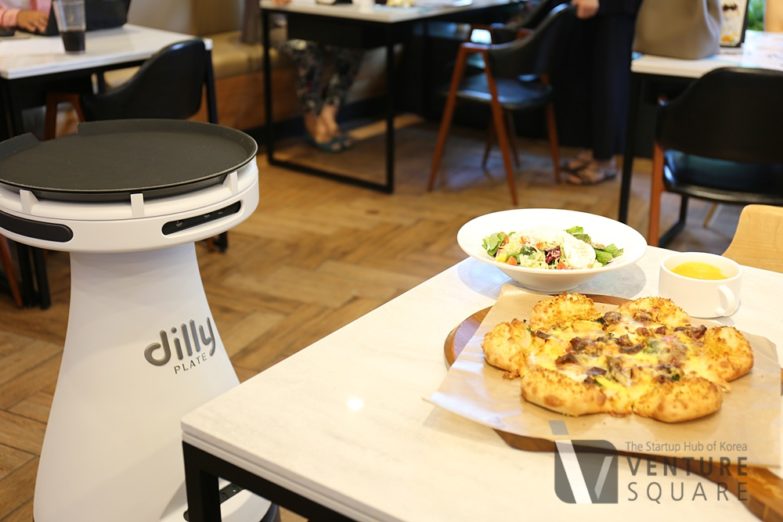 서빙 로봇의 이름은 딜리 플레이트다. 딜리 플레이트는 (dilly PLATE), ‘접시를 배달하는 부지런한 로봇’ (The diligent robots that deliver plates)이라는 뜻으로 점원을 대신해 음식을 테이블까지 가져다준다. 배민에 따르면 이번 테스트는 서빙 로봇의 현장 투입 가능성을 엿보는 것이 목표다. 로봇 개발은 우아한 형제가 지난 4월에 투자한 실리콘밸리의 로봇 기술 스타트업 베어로보틱스가 맡았다.