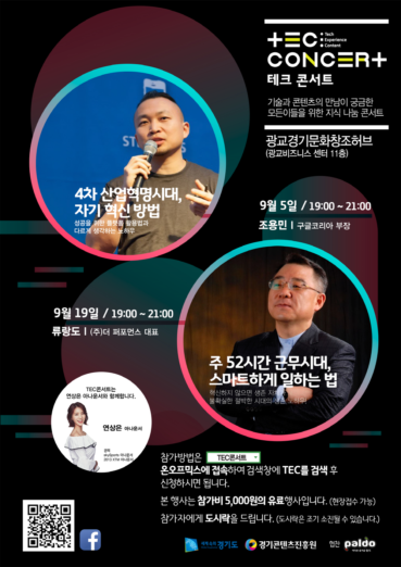 오는 9월 5일과 19일 4차산업혁명 시대의 창의적 인재를 주제로 수원 광교 경기문화창조허브에서 TEC콘서트가 열린다.