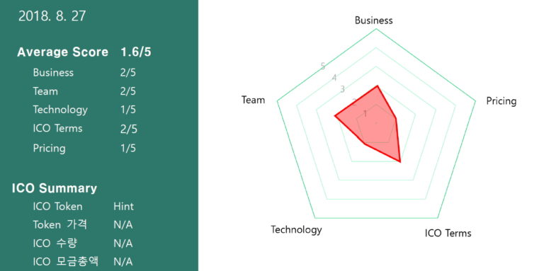 다만 ICO 애널라이즈드 측은 힌트체인이 음식 콘텐츠 사용자 및 소비자로부터 확보한 음식 관련 데 이터를 정형화해 블록에 담고 음식 연관 기업이 이를 활용해 비즈니스 효율화 모색이 가능하다는 점은 긍정적이라고 평가했다. ICO 분석 보고서는 이곳에서 확인할 수 있다.