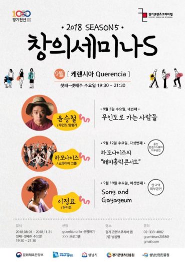 경기콘텐츠코리아랩이 창의세미나S 시즌5를 오는 9월 5, 12, 19일 개최한다고 밝혔다.