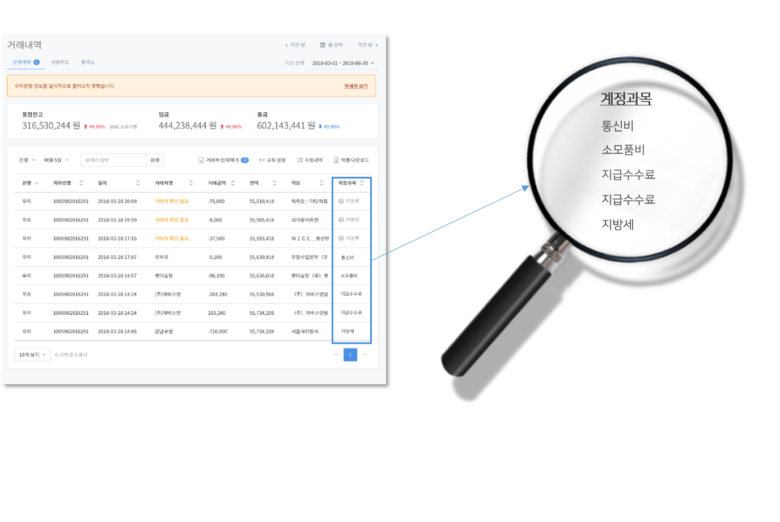 매일 자동 업데이트되는 잔고 현황은 웹과 이메일을 통해 받아볼 수 있다. 인공지능 기술로 비용별 회계 계정을 자동 분류해 사람이 따로 정리하는 수고로움을 없앴다.