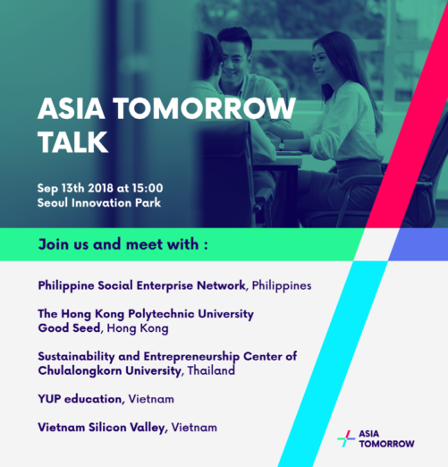 언더독스가 9월 10∼14일까지 5일간 서울혁신파크 상상청 2층 상상마루에서 2018 아시아 투모로우(2018 ASIA TOMORROW – From Seoul and Beyond)를 진행한다고 밝혔다.
