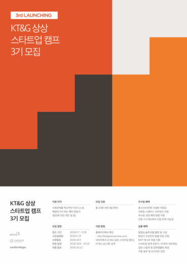 KT&G 상상 스타트업 캠프 “3기 참가자 모집중”