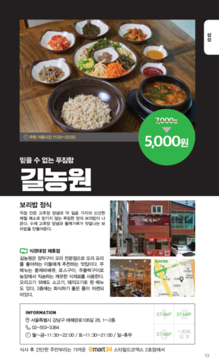 점심대장은 삼성·역삼동 등 서울 강남구 주요 오피스 상권 60개 음식점에서 정해진 메뉴 한 가지씩을 5,000원에 이용할 수 있는 쿠폰북이다. 음식점 별 최대 3회까지 사용할 수 있는 쿠폰 180개가 수록돼 있다.